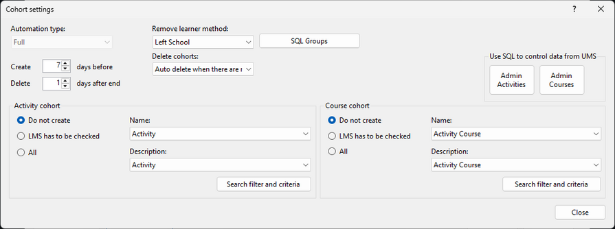 You need to attach a cohort setting to a template. This will tell UMS that cohorts will be created from this template.