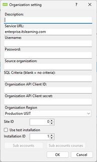Type the source organization for API connection (contact itslearning to acquire the source organization).