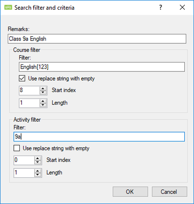 This is the SQL like filter (regular expression). If an activity matches, it will be subject to the settings in 'Semester roll'.